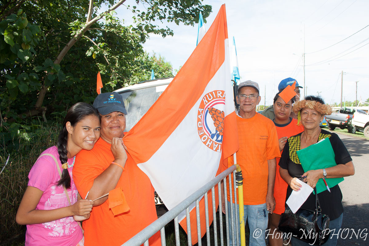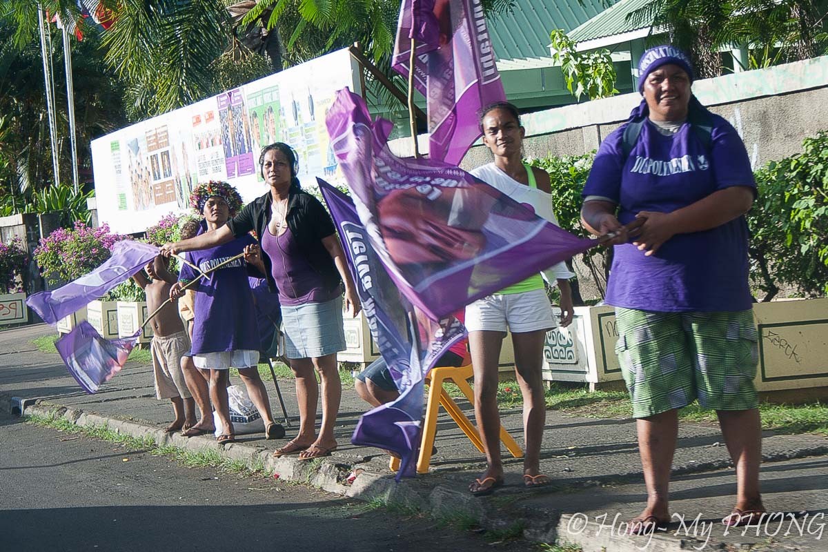 J'ai toujours pensé qu'il y aurait des photos intéressantes à faire lors des élections: les polynésiens affichent les couleurs de leur parti sans complexe, avec bravade et fierté. L'ambiance est particulière. Les drapeaux sont agités, et se retrouvent aussi sur des voitures.