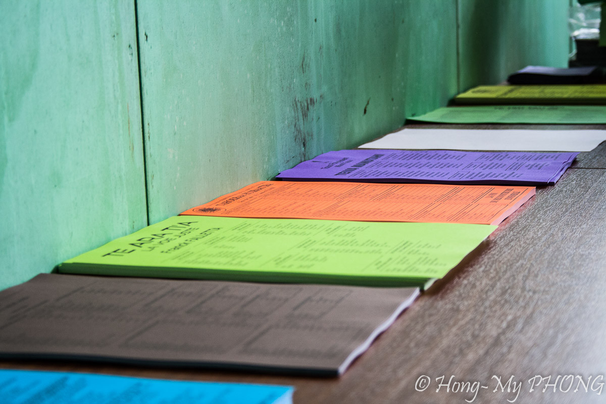 Je reviens plus tard à Papara pour le dépouillement. Ambiance calme, lourde. Cette fois, je ne m'arrête pas et ne prend aucune photo. Les partisans et électeurs sont tous assis et silencieux. Je n'ose interrompre la solennité de l'instant en me manifestant.