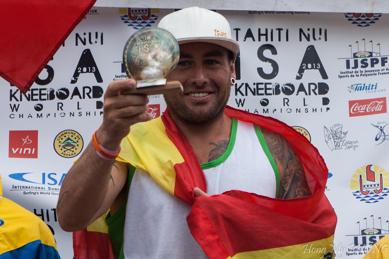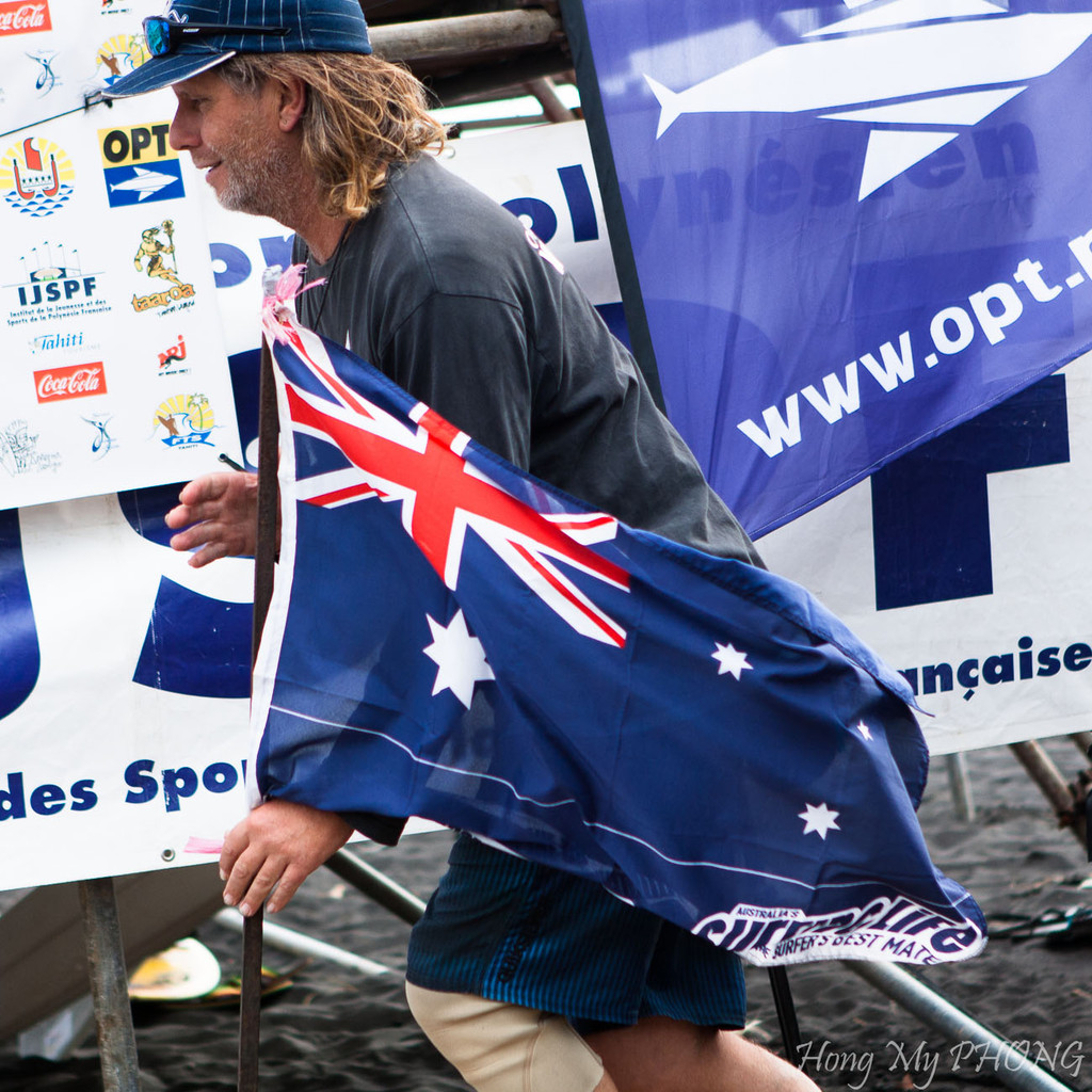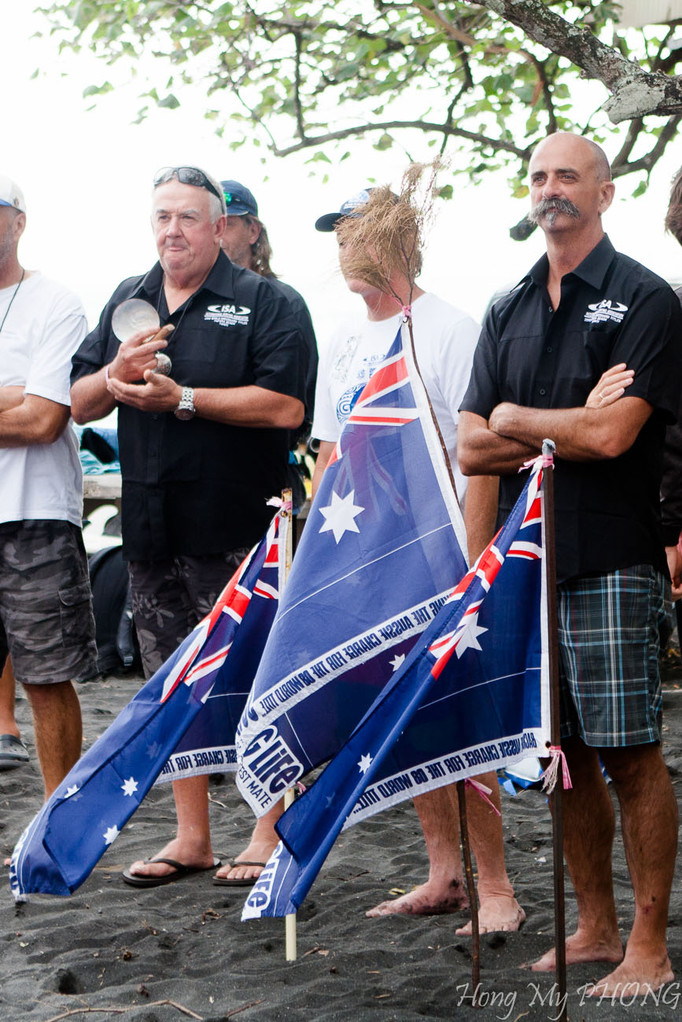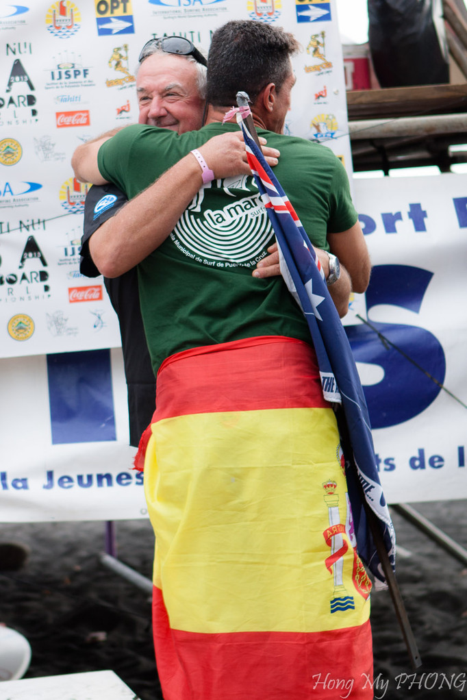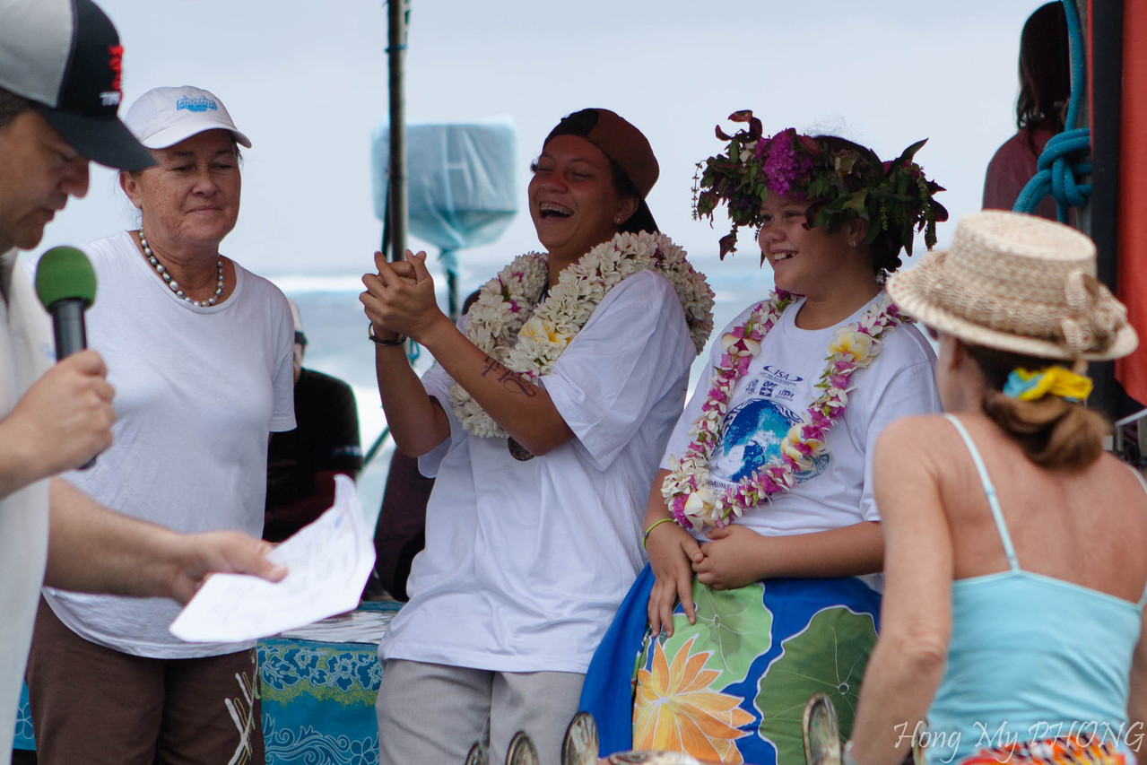 Après le remise des prix, Philppe Klima, président de la Fédération Tahitienne de Surf fait un petit discours. Il est si ému qu'il cherche ses mots.