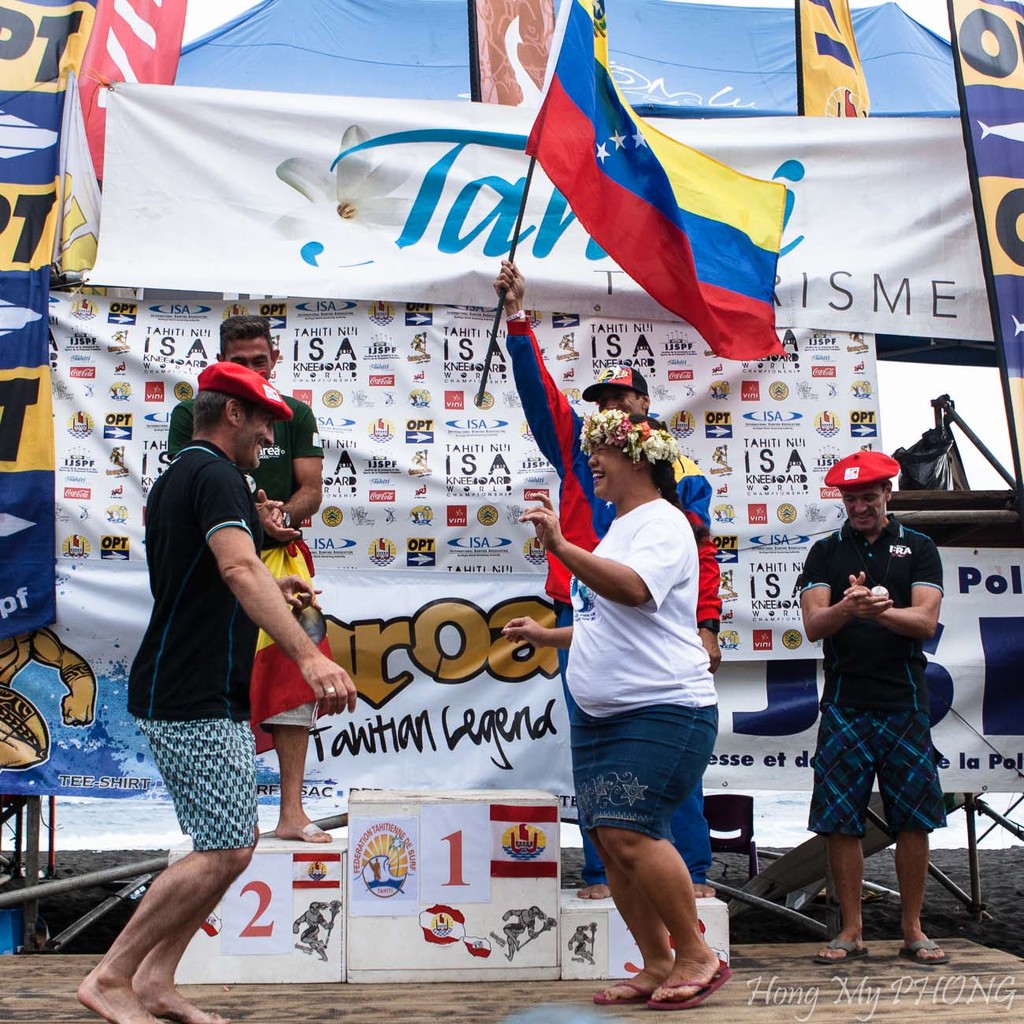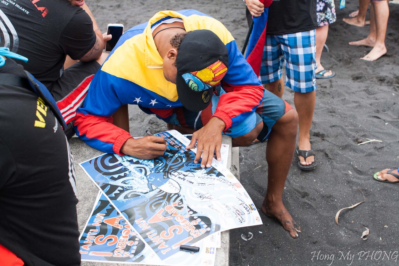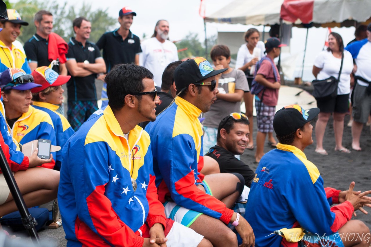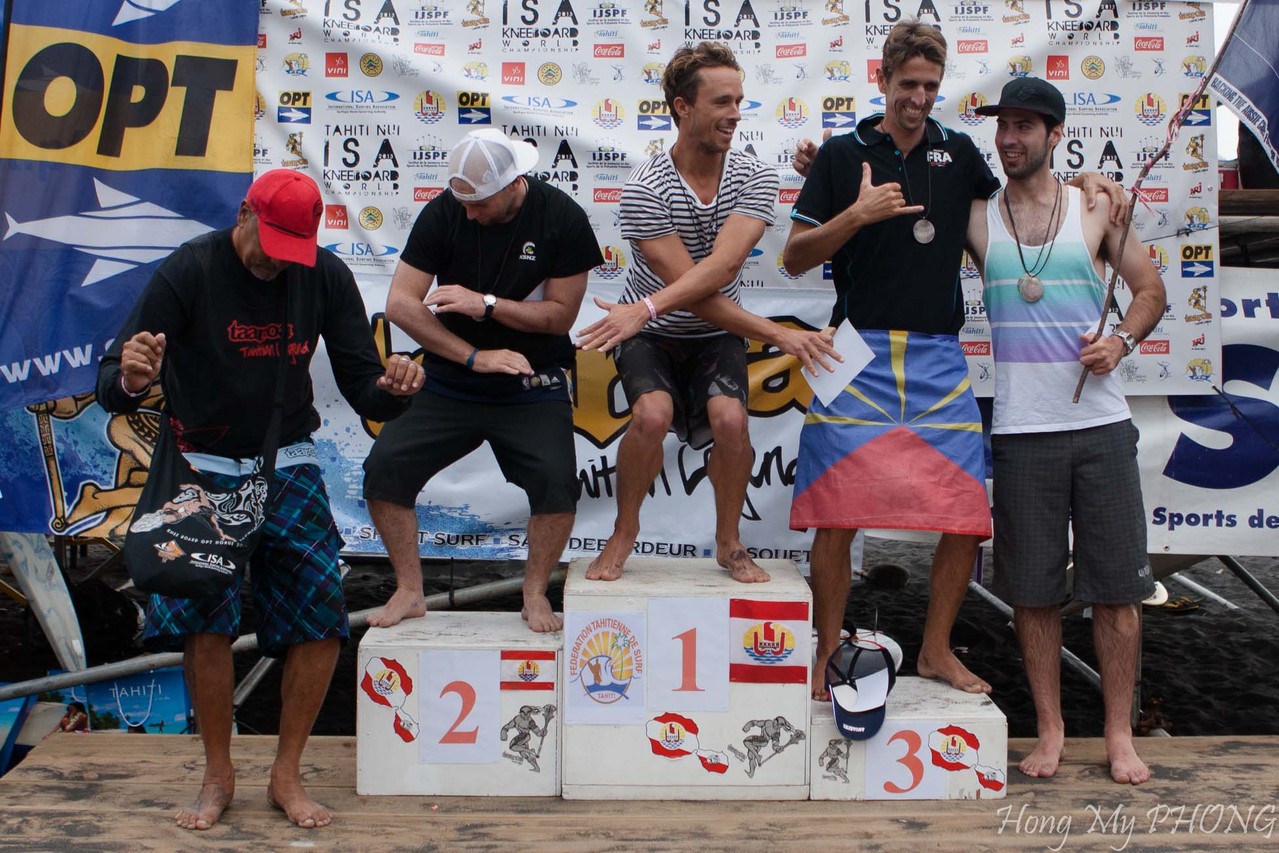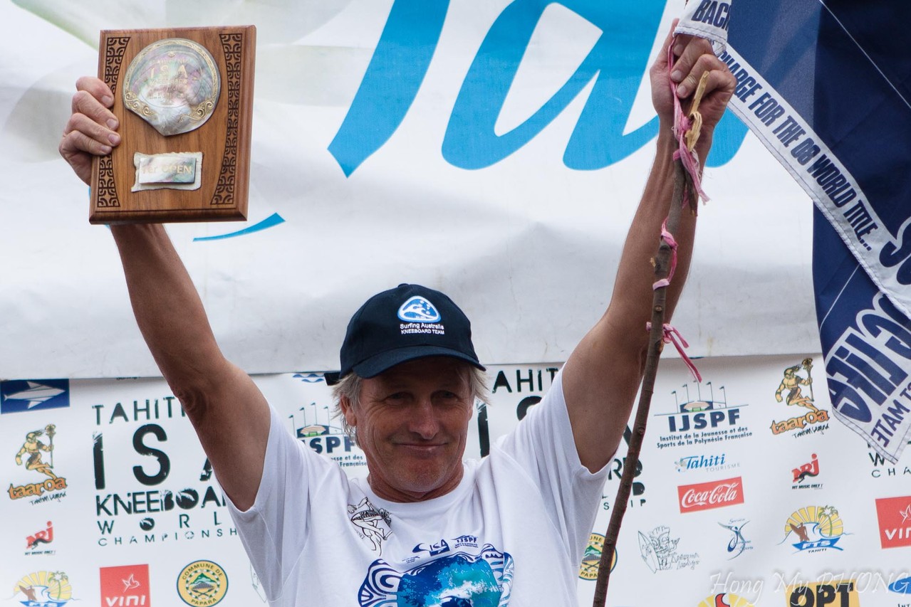 Après le remise des prix, Philppe Klima, président de la Fédération Tahitienne de Surf fait un petit discours. Il est si ému qu'il cherche ses mots.
