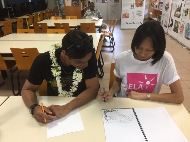Avec leur professeur M.Albert Hugues, professeur de lettres Reo magareva, les élèves CMA ont lu mon texte paru dans Littéramaohi en 2015 " La rage de vivre".