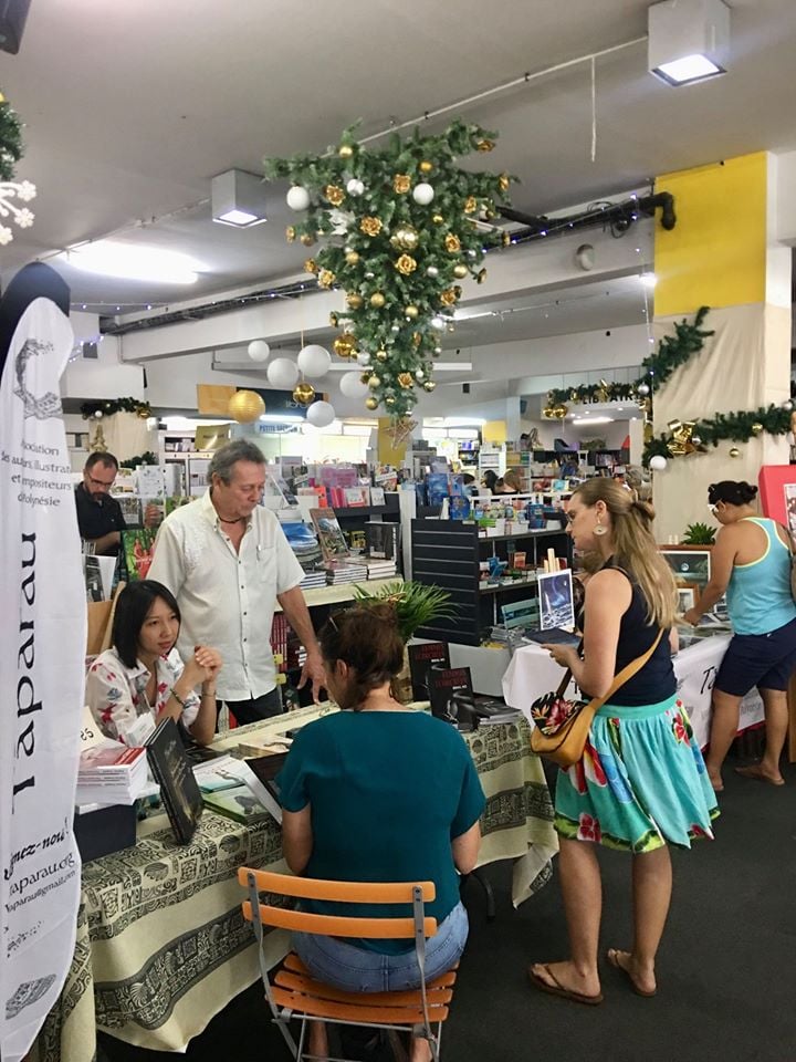 Souvenirs de ma toute première séance de dédicace à la libraire Odyssée de Papeete à la sortie de mon roman Femmes écorchées